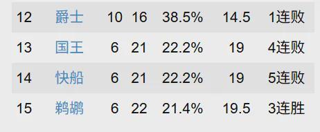 各位篮友也别看不起鹈鹕,新奥尔良人昨天通过加时大战,爆冷击败了火箭,拿下3连胜,将战绩提升到了6胜22负,只落后快船0.5个胜场。